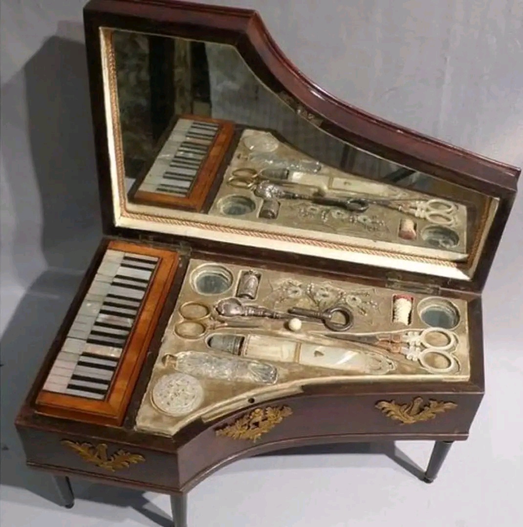 I was just sorting some of my mother's stuff the other day and came across a clothes brush with a leather(?) handle that opens and it has a similar looking sewing kit inside.