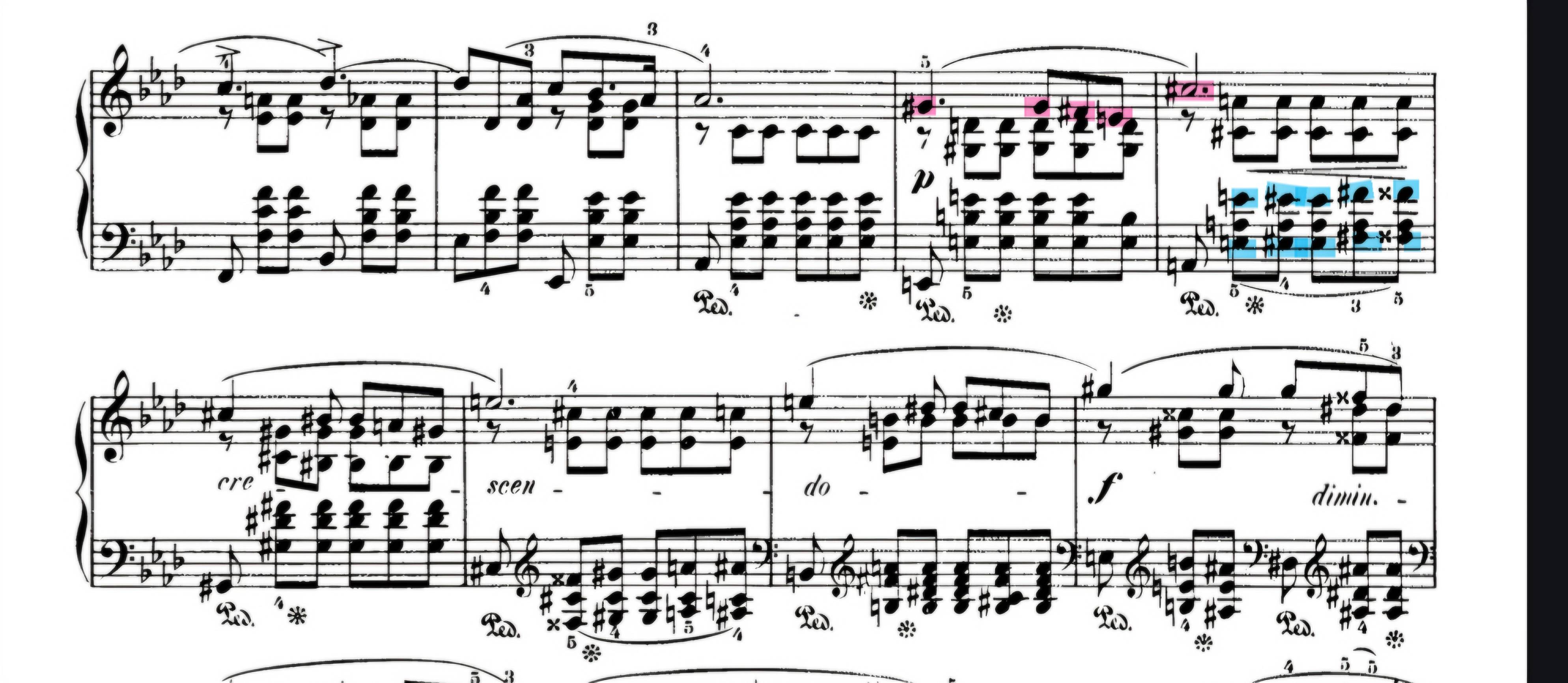 Also remember that the voiced down note(s) are not the only notes being played, i.e., don't forget the dynamic of the 'voiced up' notes. Dynamic levels are absolute--we can measure decibel levels--but mostly what we are dealing with are relative dynamic levels. So perhaps more focus on the dynamic of the melody note (the C# dotted half note in the score) would be a place to start. Note also that the C# dotted half note is the second note of a two note slur, and thus the first note of the slur (G# dotted quarter note) will be important, too. A lot going on!