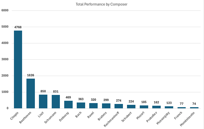 If you want a particular composers works listed by order of performances, I can probably do that too.