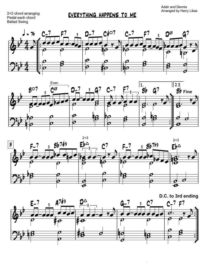 I’ve arranged "Everything Happens To You" for solo piano using my 2+2 chord arranging method.