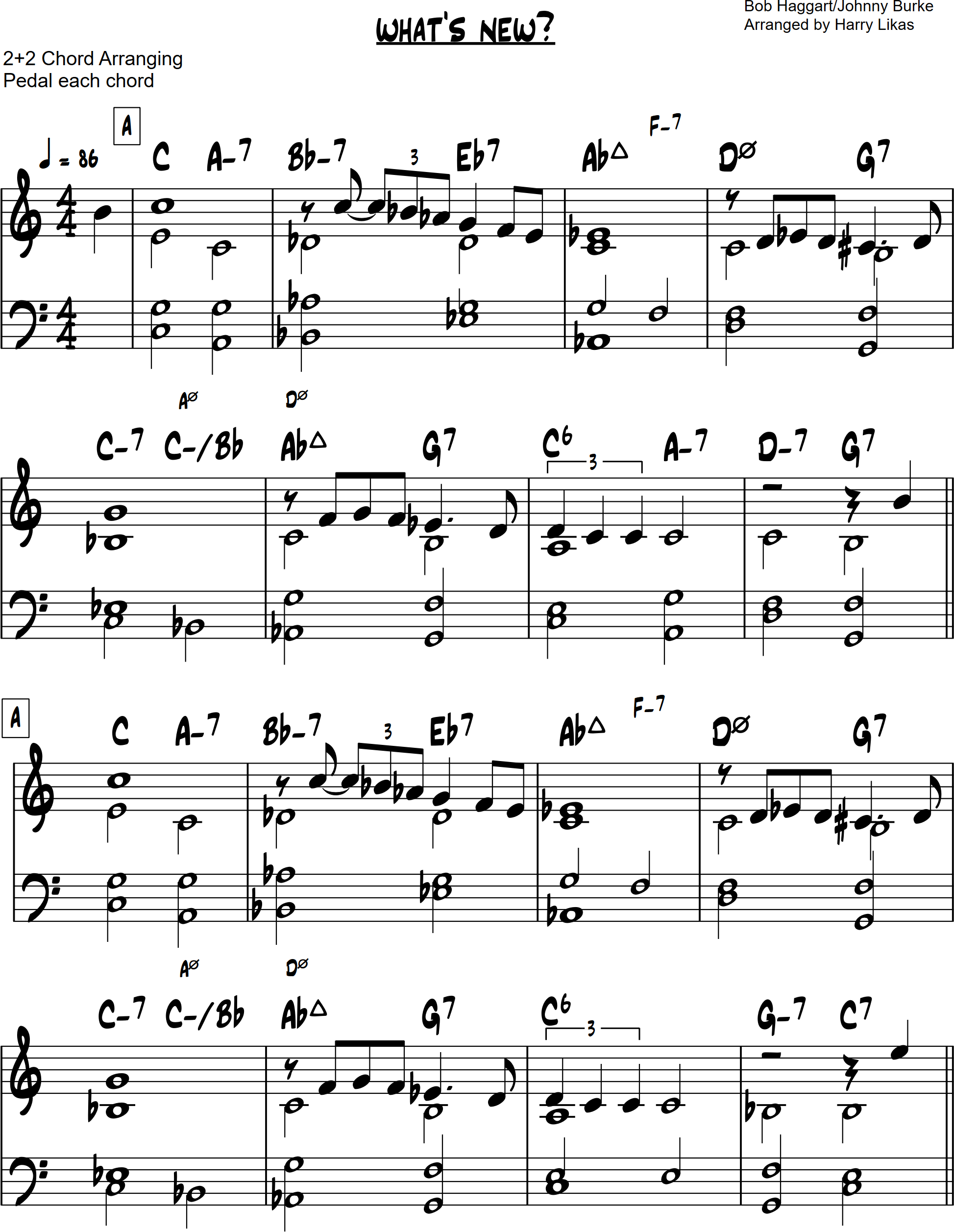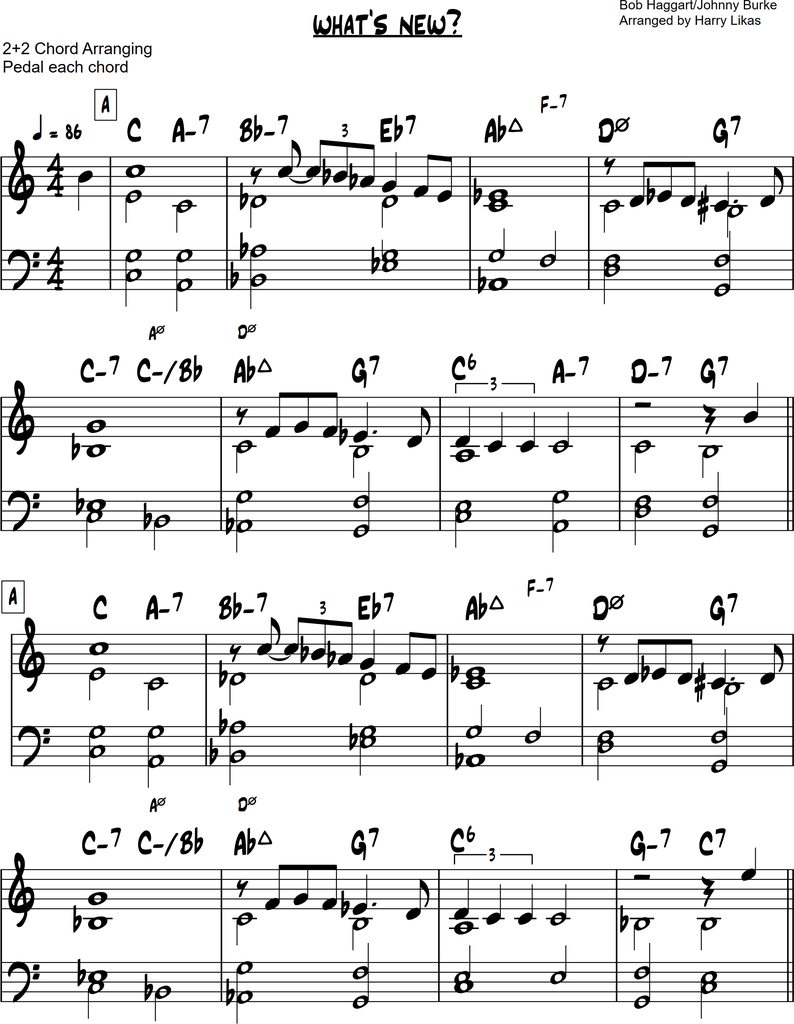 I've arranged "What's New” for solo piano using my 2+2 chord arranging method.