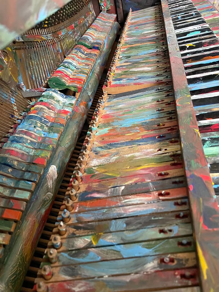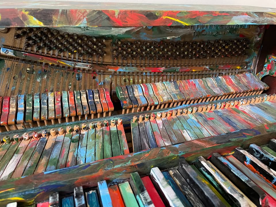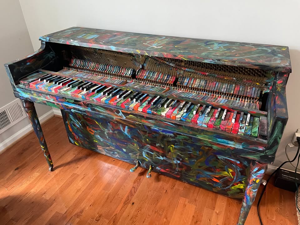 I wonder if the keys actually move freely with all that paint. I don't even want to think about the impact of paint on the hammers or the strings...