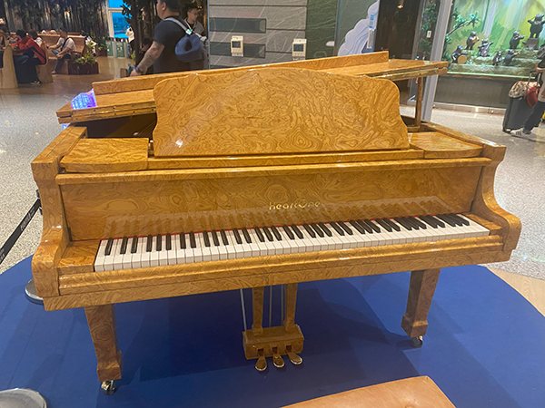 Here is the piano, a very pretty reddish-brown wood colored Yamaha, at Haneda Airport. Or rather, itās not really at the airport, but thereās a mall that you can walk to from the international terminal, and this piano is in the walkway between the airport and the mall (so you can go there without going through security).