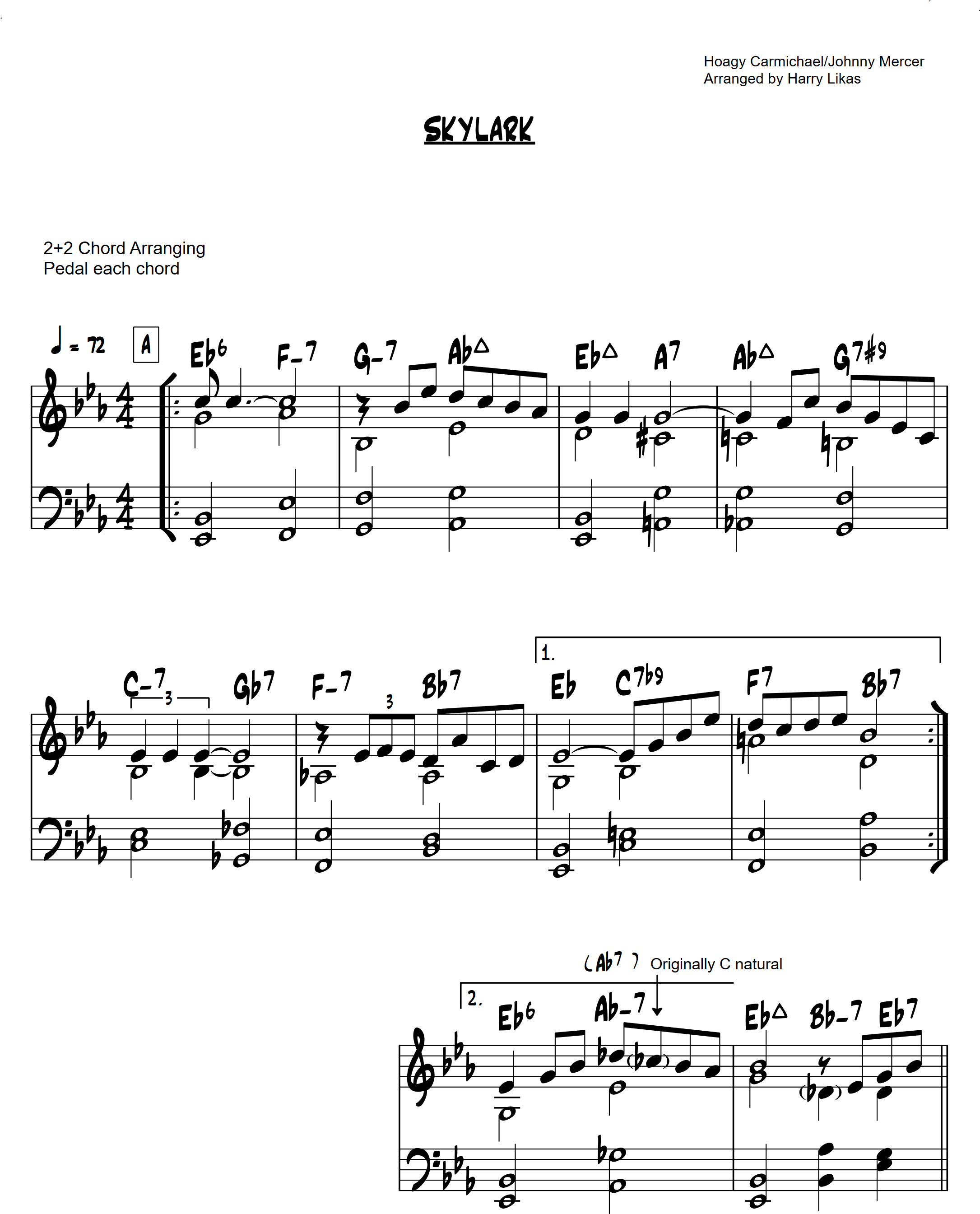 I’ve arranged Skylark, one of the most beautiful ballads in the jazz repertoire, using my 2+2 chord voicing method.