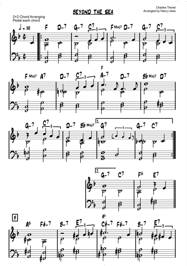 I've arranged "Beyond The Sea" using my 2+2 chord voicing method for solo piano.