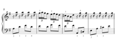 8 time and is 24 measures long. It is also composed of two halves, which are both repeated once. It is described as a fast and jocund movement, and is a good study in finger independence and facility. It features broken interval figuration, octaves, and both sustained and moving notes.