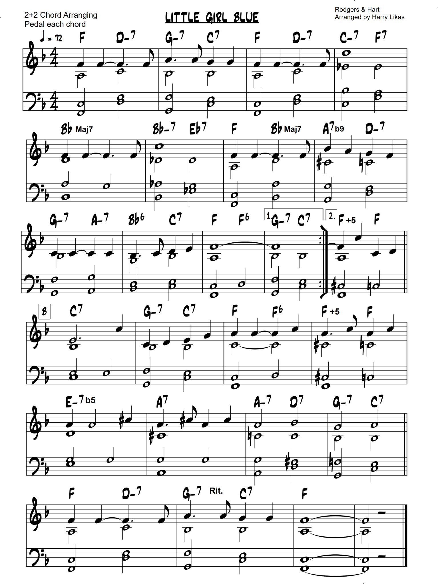 I’ve arranged “Little Girl Blue" using my 2+2 Spontaneous Chord-Arranging Method for piano.