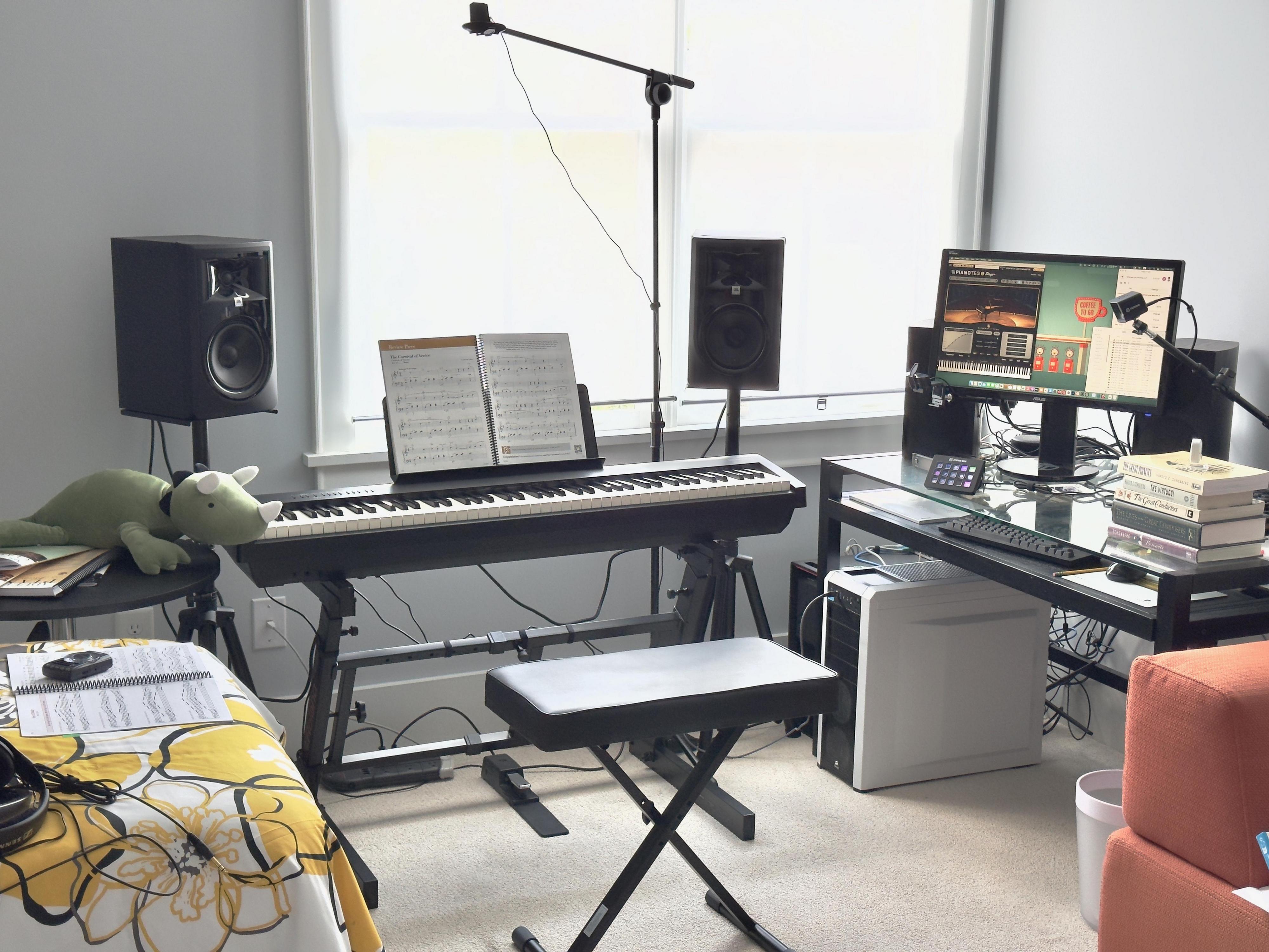TC that's a lovely setup you have! The wall colours are so tasteful and pleasant - and so are the instruments. I just noticed I never remarked on your white piano - but @Nightowl will attest that I did so behind your back because when she was looking for a piano that would have to look good, I told her that yours is quite striking 😃 Your wife is quite the drummer! (I watched your latest video just now).