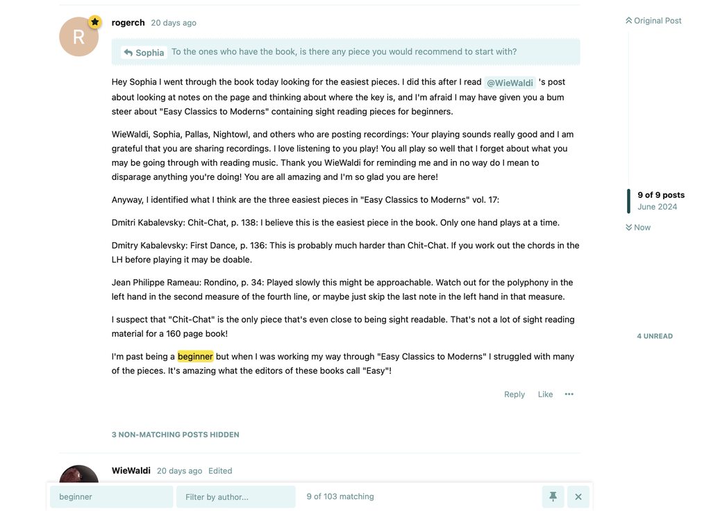 3rd: finding: if you search for the term "beginner", it won't find the text inside member-signatures, as currently in mine.